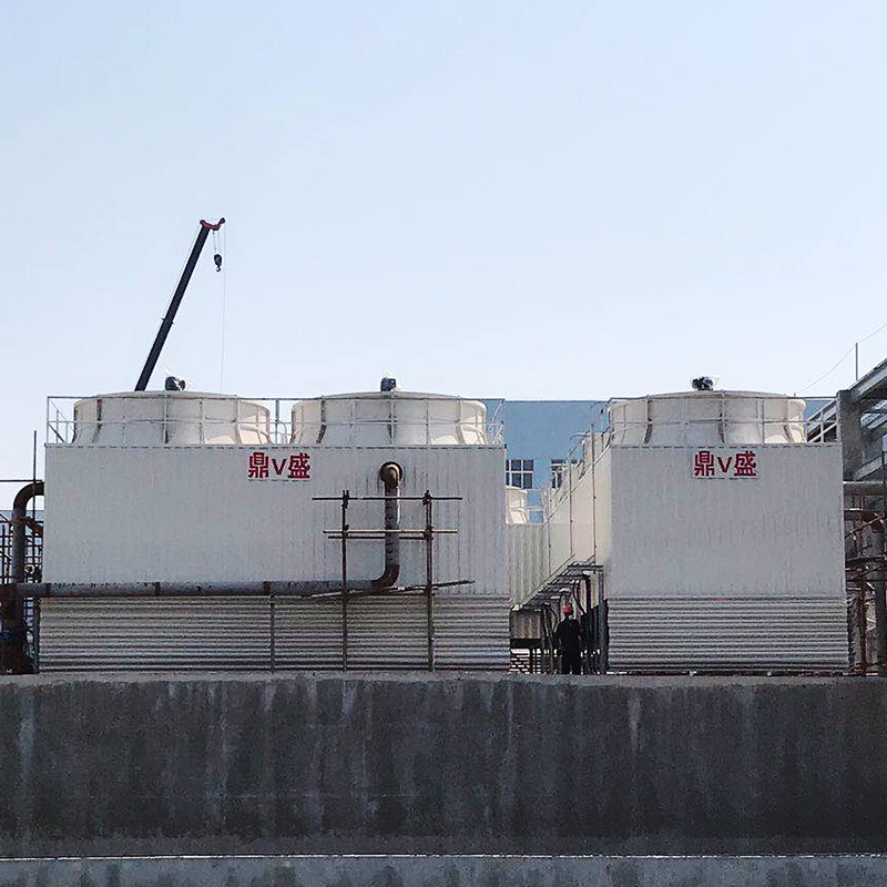 湖北世宜居建筑公司400噸方形冷卻塔安裝完畢,400噸方形冷卻塔由2個(gè)200噸方形冷卻塔并聯(lián)在一起。
